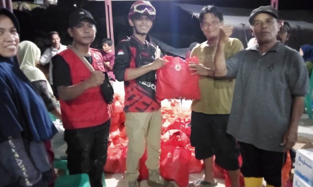 Sepanjang hari, tim langsung menyalurkan 200 bungkus makanan cepat saji (nasi bungkus) kepada warga terdampak. Selain itu, juga dilakukan packing dan pendistribusian 130 paket logistik, serta pembelian bahan untuk hygiene kit yang sangat dibutuhkan di pengungsian.